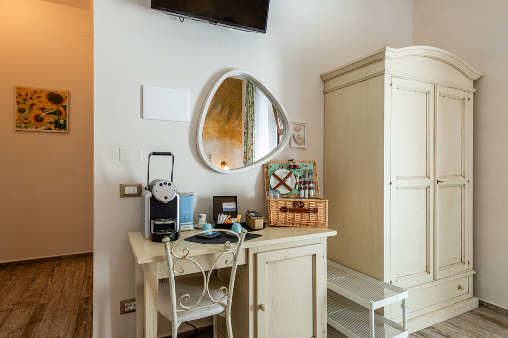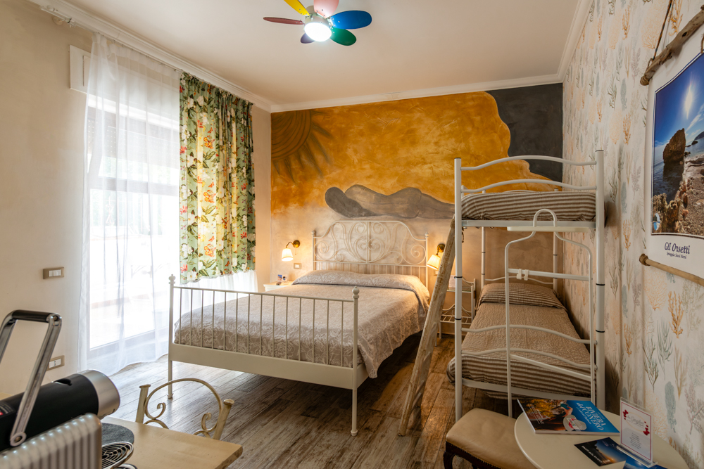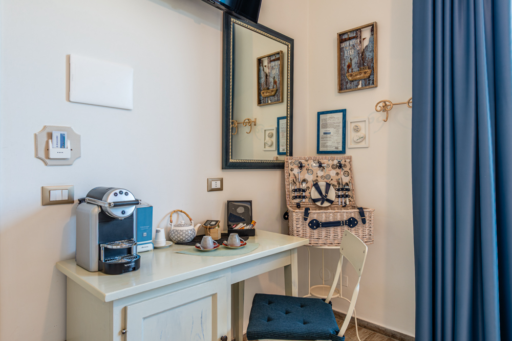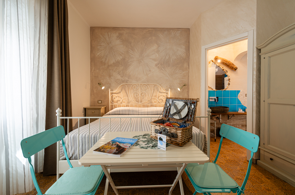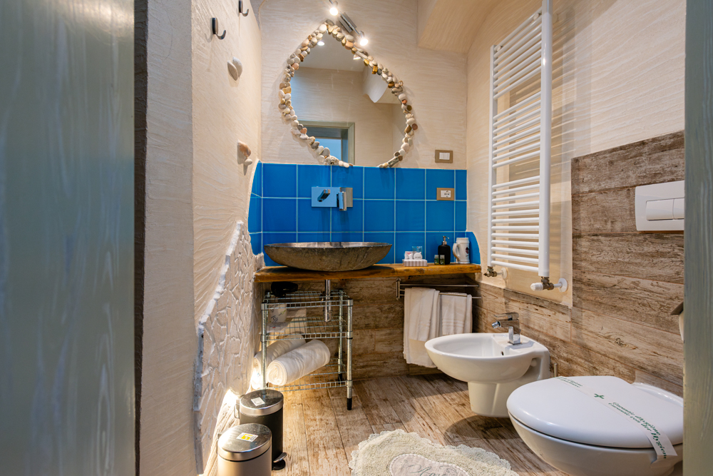 La camera “Il Ballero” del b&b LaGarolina Del Conero prende ispirazione da un famoso frutto di mare di queste zone e in particolare al suo guscio zigrinato che utilizza per scavare nelle roccia morbida calcarea